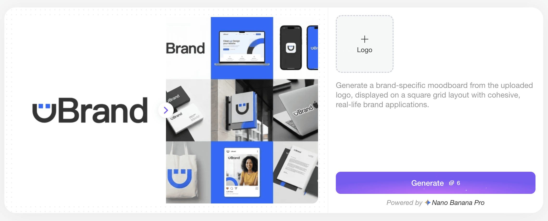 But the moodboard is just the beginning. uBrand is your key to turning your inspiration into a lasting identity. With AI-assisted features like a logo design maker and brand guideline generation, uBrand ensures that all your future assets align seamlessly with your original moodboard vision. No need to manually track colors, fonts, or design elements—these tools do the work for you, keeping your brand's expansion cohesive without the extra effort on your part.