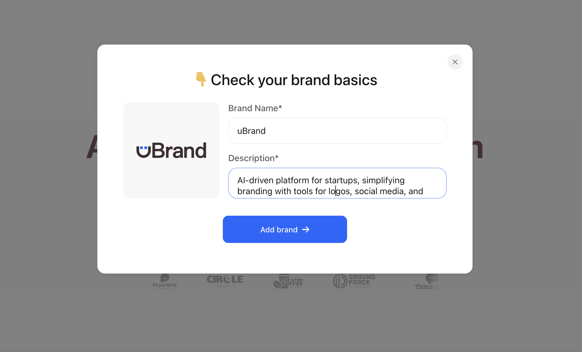 After you enter your website URL or a social media link, the AI automatically extracts your brand logo, brand name, and brand description.