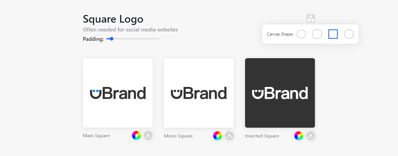 Lastly, before generating your brand guideline, customize your logo which is often needed on social media profiles. Adjust the canvas shape as you wish then download them.