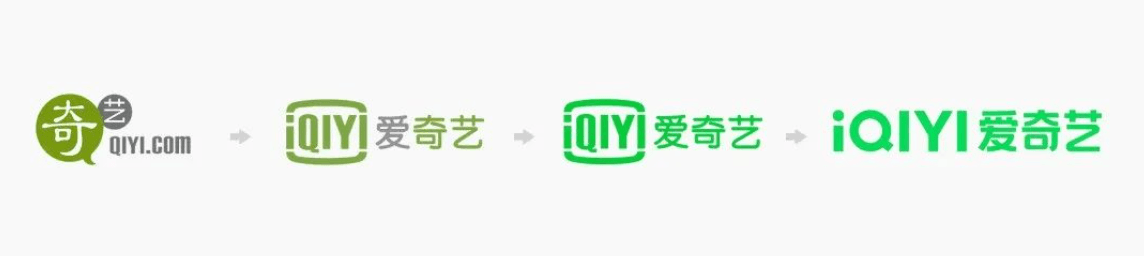 从以上相关logo案例中,我们也能够看出近几年来,品牌在用色方面的趋势发展。例如爱奇艺的品牌专属色——绿色,从下图中也能看到它的logo演变过程。爱奇艺一直都是用绿色作为品牌专属色,但是在品牌专属色的演变过程中,企业也越来越趋向于使用充满能量和活力的颜色,一方面迎合目标客户群体的审美进步,同时也在向目标群体展示企业的品牌价值主张。