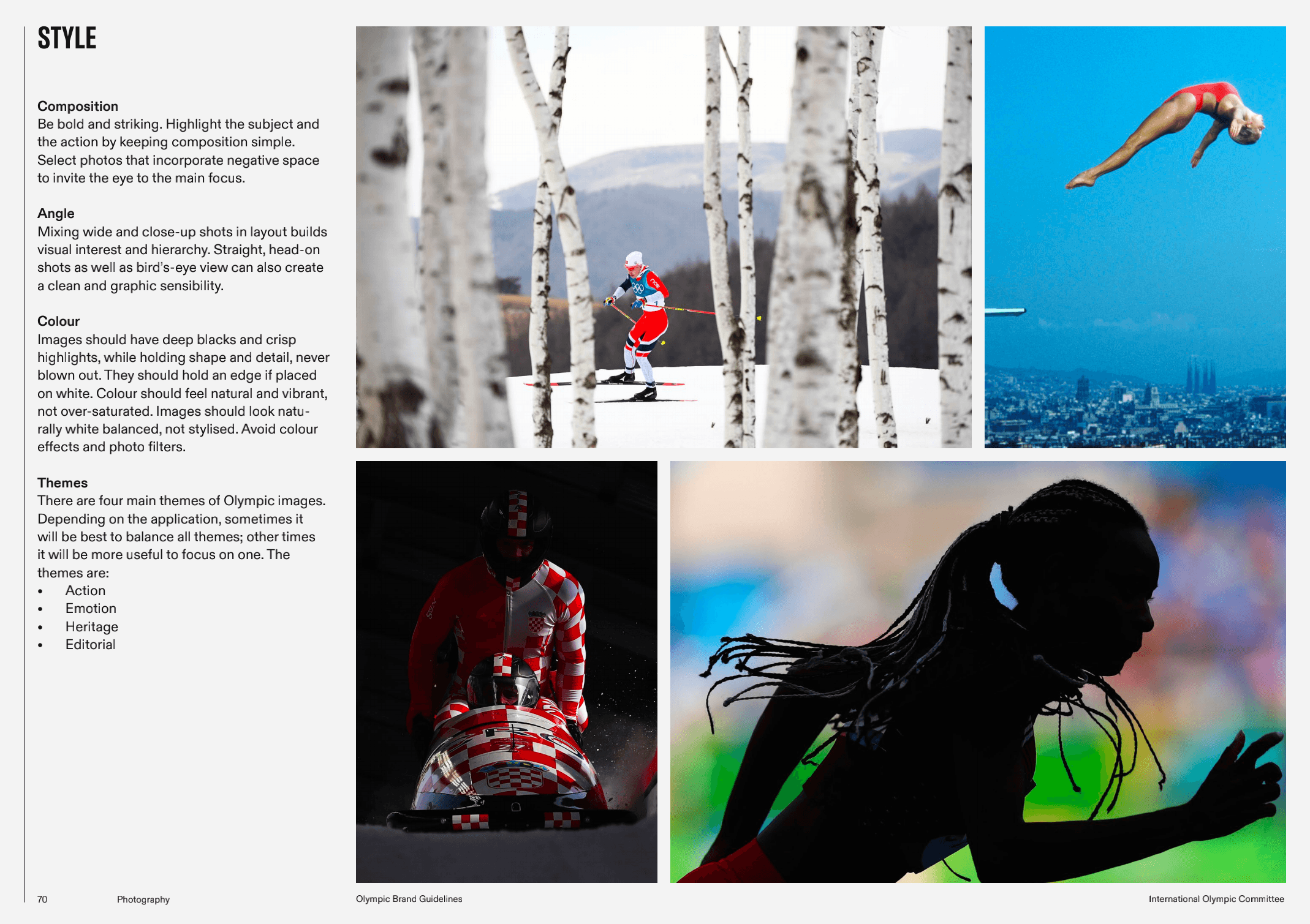 图像素材影响着品牌的整个气质和调性,奥委会在摄影主题细节上都有所要求。奥运赛场上的运动摄影,摄影师通过每分秒的细微之差展示运动员精神面貌的方式,传递着各国多元文化与弘扬奥林匹克精神。
