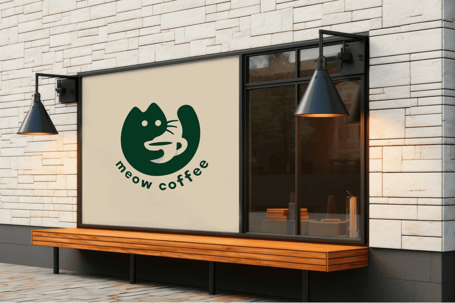 在设计时我们也要注意遵循极简、色泽鲜明、强关联度的原则,Logo的视觉形象一定要具有独特性,不仅是为了方便记忆,也是为了让用户对品牌加深印象,比如Meao猫咖Logo设计中,为了凸显品牌名称Meao(喵),我们就可以采用一个猫咪怀抱咖啡的图案作为图标,一个可爱动人的爱喝咖啡的猫咪形象跃然纸上了。