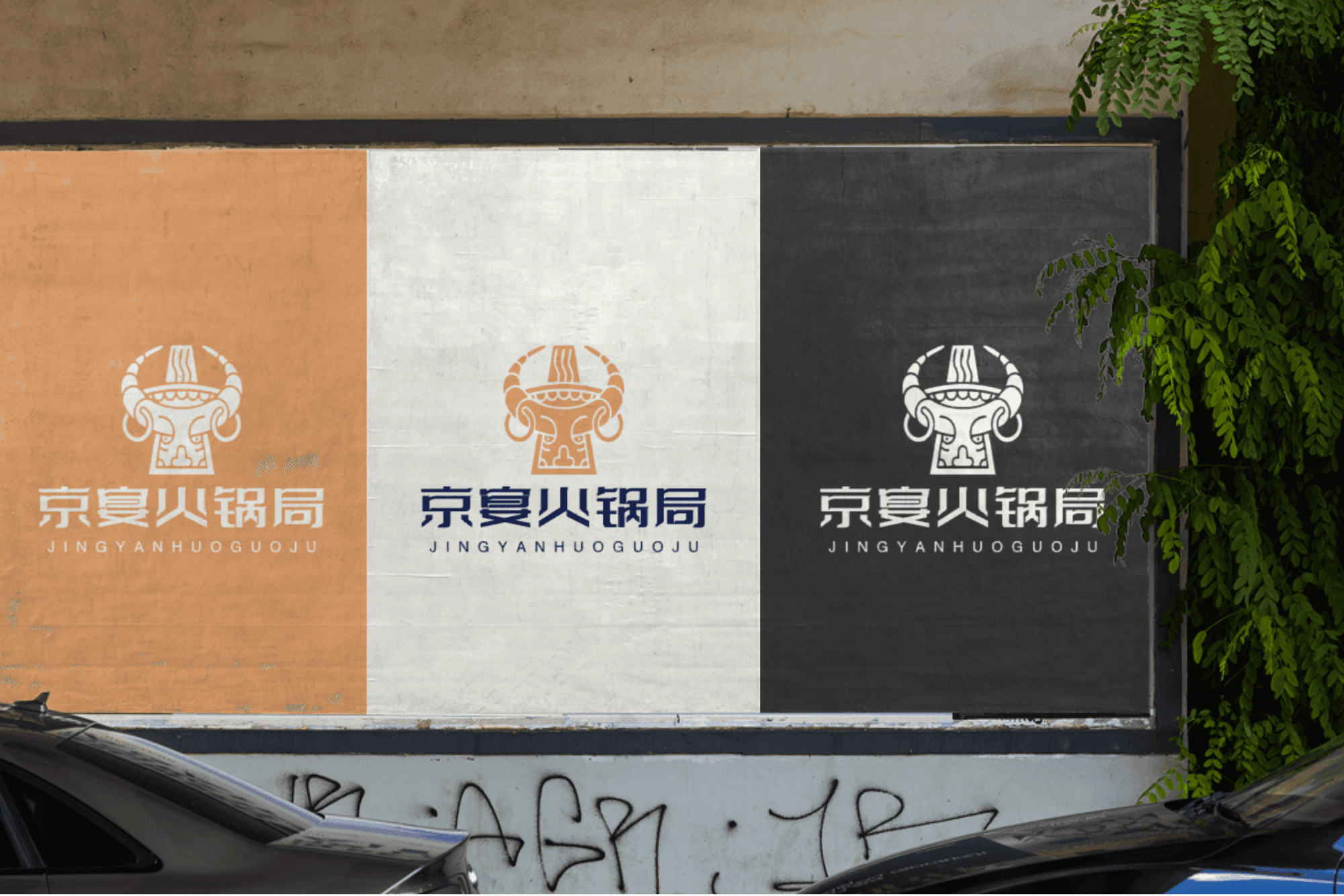 这个火锅店Logo设计独具特色,结合了传统与现代元素,上方的图案是一只古铜色的鼎,象征着古代文化和烹饪传统,同时也隐喻火锅的容器,鼎的造型复杂且精美,传递出高档和正宗的感觉,下方的品牌名称“京宴火锅局”采用深蓝色的现代字体,与上方的古典图案形成鲜明对比,展现出品牌的现代感和创新精神,整体设计简洁大气,色彩搭配高雅。