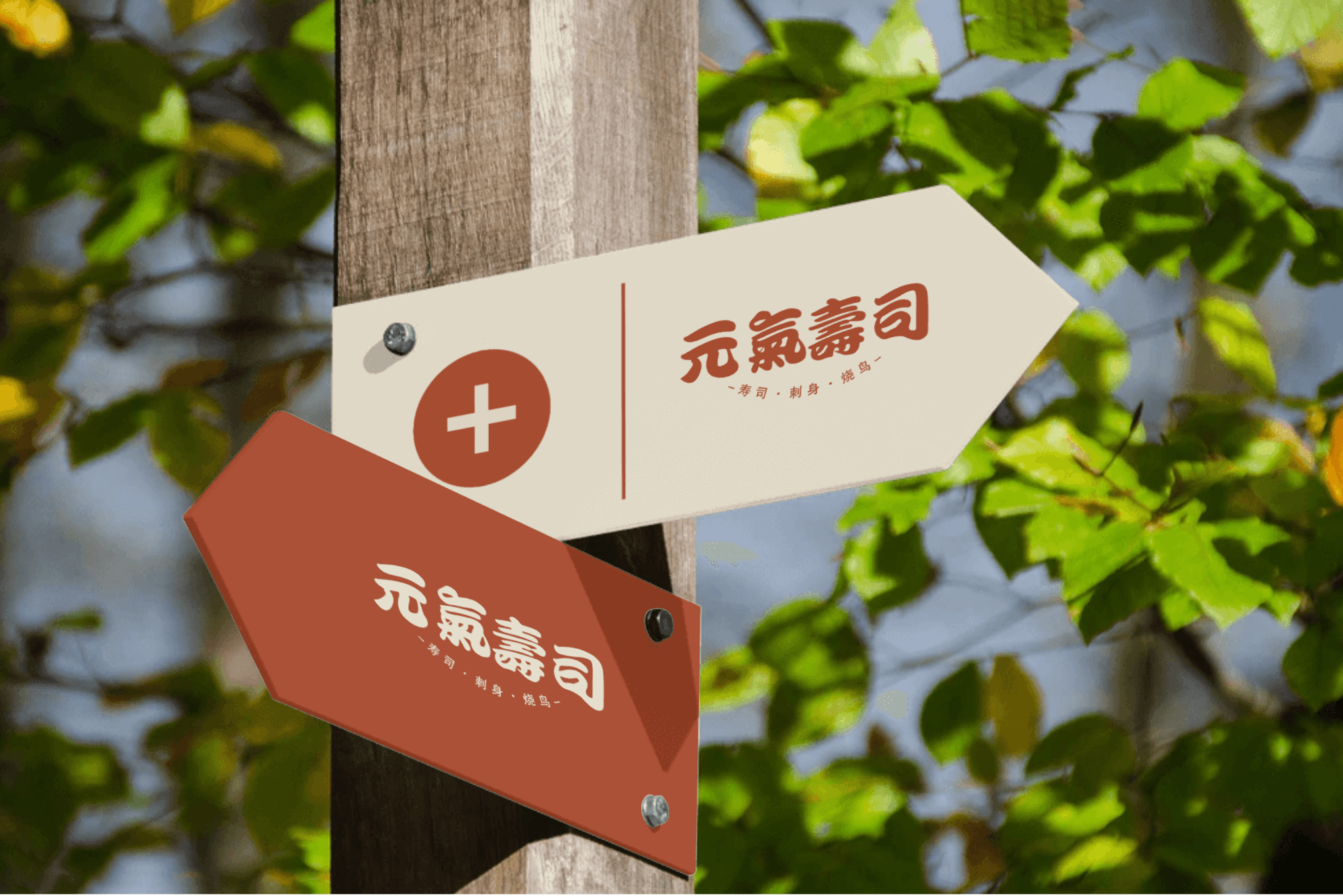 这个日式寿司Logo设计简洁而典雅,充满了传统日式风情,Logo采用深红色字体,传递出一种温暖和高雅的氛围,文字“元气寿司”使用手写风格的字形,柔和而富有亲和力,突显品牌的手工制作和细腻用心,下方的小字“寿司・刺身・烧鸟”明确了餐厅的主要菜品,方便顾客快速了解,整体设计清新简洁,色调柔和,与日式美食的清淡和精致相得益彰,吸引那些追求正宗日式料理的顾客。