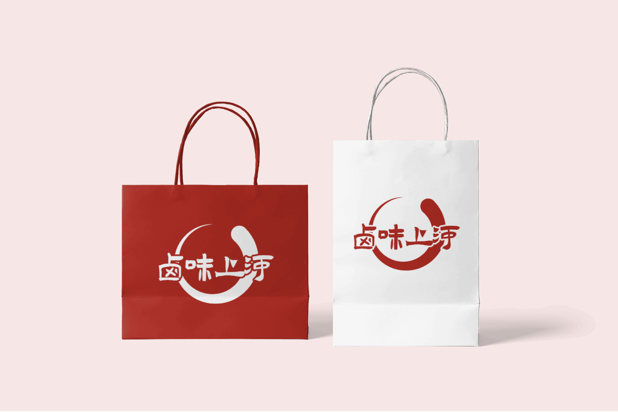 这个卤味Logo设计简洁而富有传统韵味。Logo以一个红色的圆形笔触为背景,象征圆满和经典。中心的文字“卤味上海”采用了毛笔书法风格,字体流畅有力,突出中式传统特色,红色的主色调不仅醒目,还传递出热情与美味的感觉,整体设计简洁大气,既体现了传统文化的精髓,又给人以信任感和专业感,适合传递正宗卤味的品牌形象。