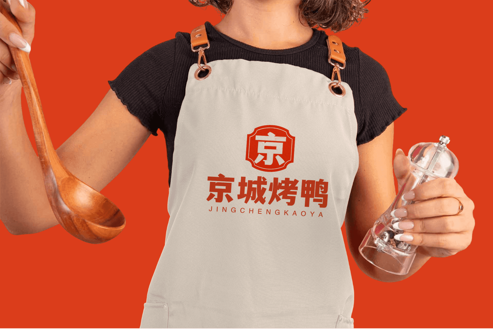 这个Logo设计以红色为主色调,传达出热情和美食的吸引力,红色也是中国传统文化中象征吉祥和喜庆的颜色,中心的“京”字被置于一个古典的盾牌形框架中,体现了品牌的地域性和历史感,暗示其与北京烤鸭这一传统美食的关联,整体设计传达出品牌的正宗与传统,同时也融入了现代元素,适合餐饮logo品牌形象塑造。